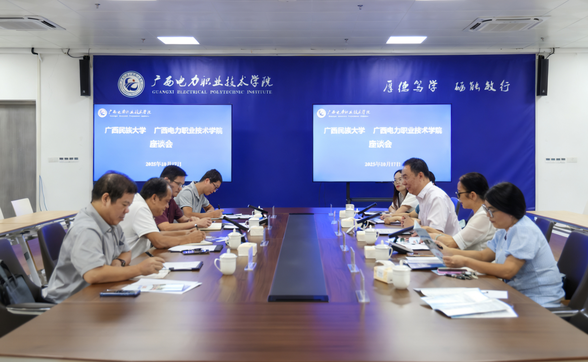 10月17日,广西民族大学党委常委、副校长蔡高根带队赴广西电力职业技术学院开展座谈交流。广西电力职业技术学院党委副书记、校长徐武彬等会见了我校交流组一行。