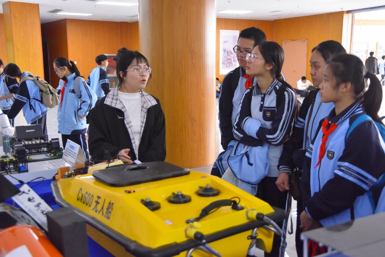 时近中午,师生们来到八坡相思湖餐厅用餐,体验大学食堂的生活气息。餐后,同学们依次参观了校史馆、语言博物馆、铸牢中华民族共同体意识体验馆和科技展厅。在校史馆,一幅幅珍贵的历史照片诉说着学校的发展历程;在语言博物馆,丰富的语言文化展品让同学们感受到中华文化的博大精深;在科技展厅,前沿的科技成果展示引发了同学们对科学探索的浓厚兴趣。