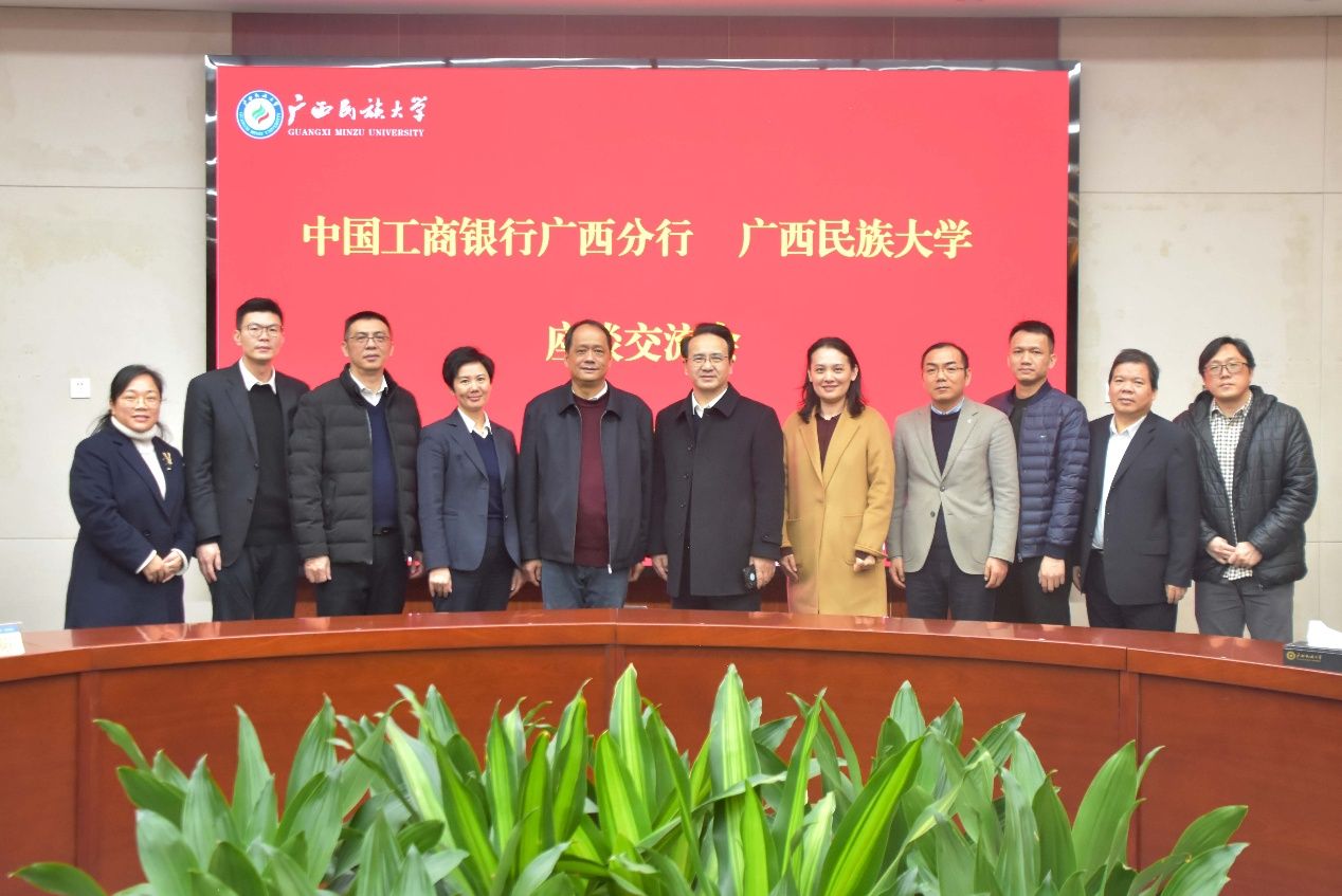 1月27日上午,中国工商银行广西分行党委委员、副行长兼南宁分行党委书记、行长龙云一行到广西民族大学交流。校党委常委、副校长蔡高根会见龙云一行,并在广西民族大学相思湖校区文化研习基地206会议室出席座谈交流会。有关职能部门负责人参加会议。