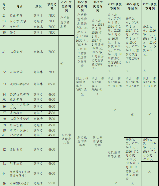 1.2026级学生:专升本、高起专层次学生应缴清学费总额的1/2,高起本学生应缴清学费总额的1/3。